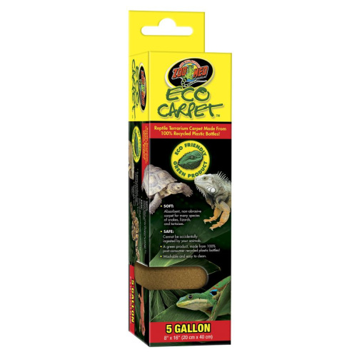 Zoo Med Eco Carpet Reptile Carpet - Tan - 5 gal (8" x 16")Zoo Med Eco Carpet is a soft, absorbent and non-abrasive terrarium liner for tortoises, terrestrial turtles, snakes, lizards, and insects. This carpet cannot be accidentally ingested by your animals and is a better solution for your tank than non-absorbent Astro-turf carpets. Eco Carpet is washable, easy to clean and made from 100% post-consumer recycled materials.