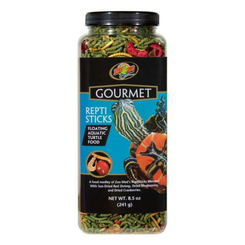 Zoo Med Gourmet Repti Sticks for Aquatic Turtles provide a delicious medley of your turtles favorite foods, including sun dried red shrimp, mealworms and dried cranberries - just like they eat in nature! This high protein diet is fortified with vitamins and minerals to support healthy activity and growth.
