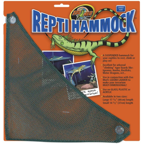 Zoo Med Repti Hammocks are made of soft nylon mesh which provides a lofty, yet accessible multi-dimensional perch thats ideal for security and basking. The Repti Hammock is durable, adaptable to any cage or terrarium, and easy to clean.